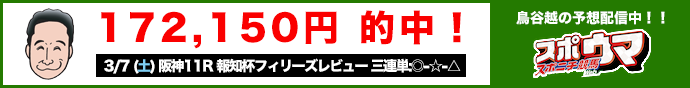 7日も田村にお任せしよう。狙うは京都10Rの③ショウリュウレーヴ。「前走はダートが合わなかった。芝に戻して一変する」と力強いコメントとともに期待を寄せた。