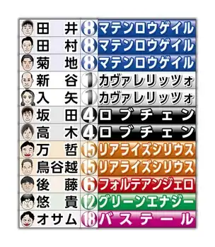 他では朝日杯FS勝ち、レーン騎乗の(1)カヴァレリッツォ。東スポ杯2歳Sを勝った時と同じくらいの状態になっている(11)パントルナイーフ。堅実なレースぶりの(9)ライヒスアドラー、皐月賞と相性のいいキタサンブラック産駒で弥生賞が強かった(18)バステールも買いたい。さらに大穴で(13)アクロフェイズ、(14)ゾロアストロも押さえる。ホープフルS組は思い切って切る。