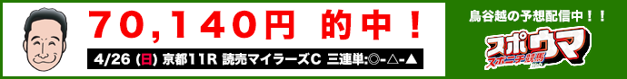 スポニチでは本社・高木がロブチェンを「マジ買う!」で指名し、馬連を本線で的中。「チグハグな競馬だった共同通信杯でほぼ本命は決めていた」とコラムで語るなど、強い信頼が的中につながった。万哲、鳥谷越も2着リアライズシリウスを「マジ買う!」で本命に取り上げ、3連単を的中。さすがの読みを見せた。