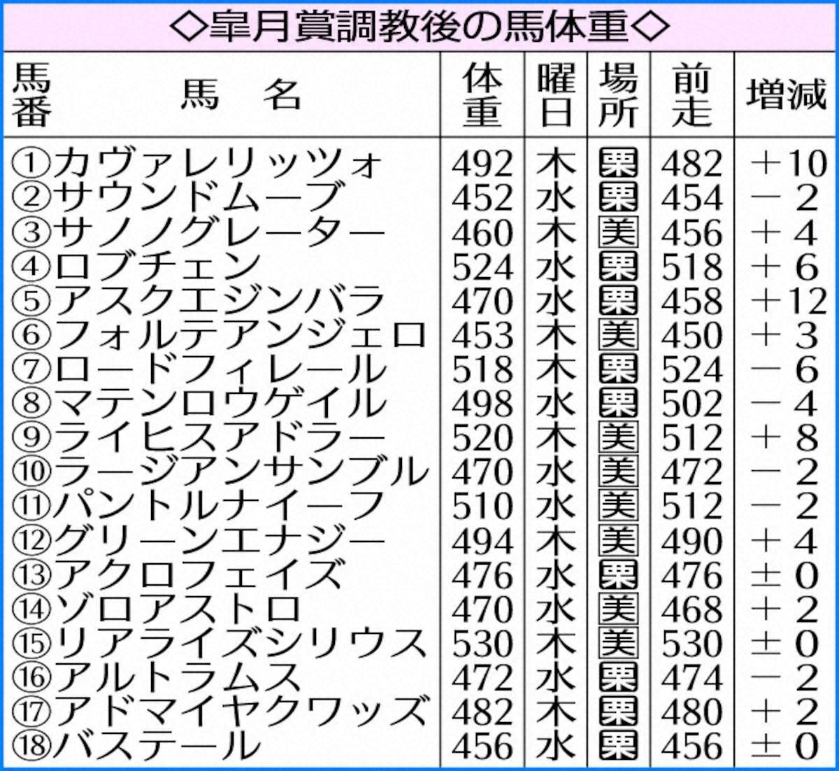 【皐月賞】理想的 カヴァレリッツォは10キロ増